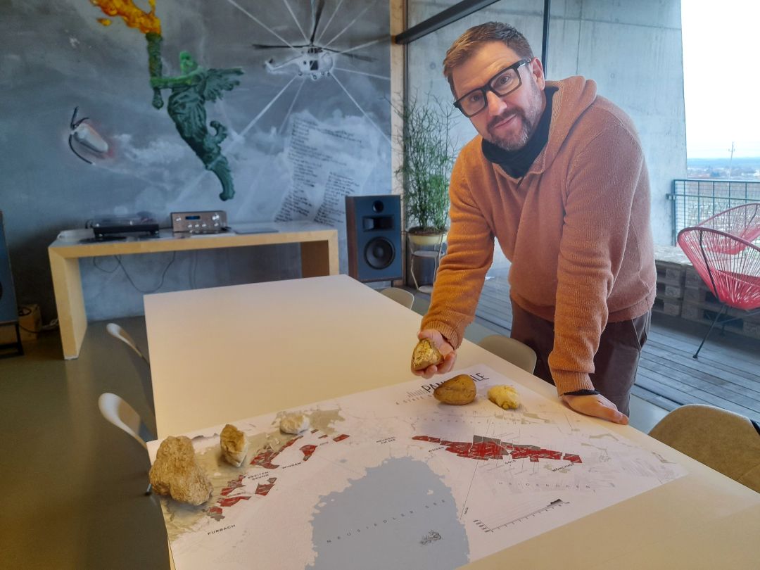Claus Preisinger in Gols displays the different soil types of his sites surrounding Lake Neusiedl.